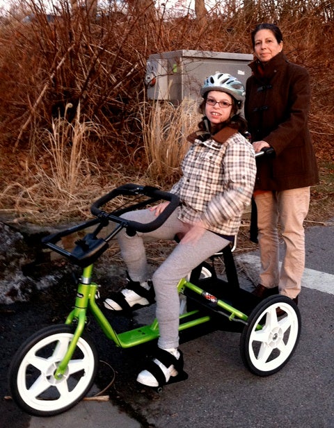 At 12-years-old, Pat began working with Maddie to strengthen her core and upper body though physical and aquatic therapies, as well as address her tight heel cords. Pat has also introduced an adaptive bicycle to Maddie who, on the first try, pedaled the bike independently.